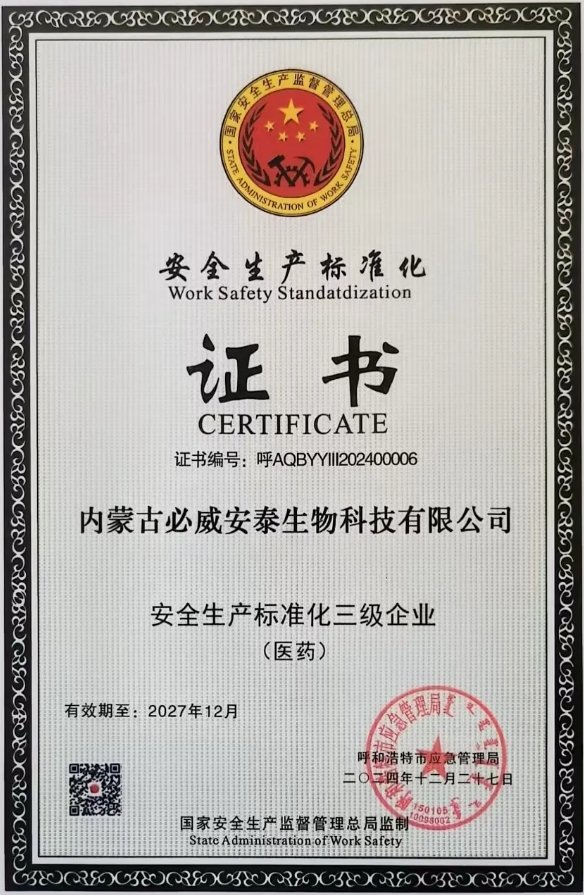 內(nèi)蒙古必威安泰生物科技有限公司成立于2008年6月,位于呼和浩特市和林格爾乳業(yè)開(kāi)發(fā)區(qū),占地123畝,注冊(cè)資本1.25億元。公司專注于生物疫苗研發(fā)生產(chǎn),是原農(nóng)業(yè)部批準(zhǔn)的首家采用細(xì)胞懸浮培養(yǎng)技術(shù)生產(chǎn)口蹄疫疫苗的企業(yè),擁有兩條7550升德國(guó)進(jìn)口懸浮培養(yǎng)生產(chǎn)線,年產(chǎn)能20億毫升,覆蓋多種動(dòng)物疫苗。公司被認(rèn)定為自治區(qū)“企業(yè)研發(fā)中心"“重點(diǎn)龍頭企業(yè)單位”“企業(yè)技術(shù)中心"和國(guó)家"高新技術(shù)企業(yè)”,“口蹄疫基因標(biāo)記疫苗”獲全國(guó)商業(yè)科技進(jìn)步一等獎(jiǎng)。2024年,瑞普生物控股后,公司構(gòu)建全生命周期質(zhì)量管控體系,獲多項(xiàng)國(guó)際權(quán)威認(rèn)證,包括ISO9001、ISO14001、ISO45001、ISO5001及獸藥GMP、CNAS、GCP、GSP等。